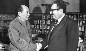 "Als praktizierender Politiker wurde er selbstverständlich mit den Programmen seiner Partei identifiziert. Als Regierungschef war er unweigerlich den nationalen Interessen verplichtet. Aber sein bestimmender Charakterzug ist sein Beharren auf Wahrheit, nicht auf Zweckmäßigkeit. Aus diesem Grund wird er heute als eine globale Führungsfigur gefeiert." (Foto: Kissinger mit Mao)