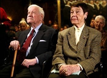Helmut Schmidt was born in 1918 in Hamburg, Germany. In 1937, he was drafted into military service where he later became Lieutnant. (Foto: with Loki Schmidt) In 1953, he entered politics and by October 1969, Mr. Schmidt became minister of devence in Willy Brandt's cabinet - and was continuously involved in social und foreign politics. During the economic crisis in the early 1970's, he was minister of economy and finance. When Chancellor Brandt resigned as head of goverment in 1974, Helmut Schmidt was elected as the 5th chancellor of Federal Republic of Germany. In 1979, Mr. Schmidt participated at "The Summif of the Four" - with U. S. President Jimmy Carter, French President Valerie Giscard D'Estaing and British Prime Minster Robert Callagham - that adressed the issues of SALT (Strategic Arms Limitation Treaty) and the role of China in the Nord-South dialogue. In October 1982, Mr. Schmidt decided not to stand for the Goverment Elections. He resigned from the Parliament in Bonn at the end of the legislative term, in September 1986. His views on foreign and economic policies are renowned, sought after and published worldwide. In May 1983, Mr. Schmidt became Co-Publisher of "Die Zeit", Germany's most prestigious weekly newspaper covering politikal, economic and cultural issues.