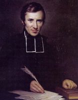 "So wie das Christentum... wo es frei wirken kann, als das Prinzip der bürgerlichen Freiheit oder der wechselseitigen Befreiung der Menschen voneinander sich er- weist, indem es die Gewalt der Menschen über den Menschen zwar zuläßt, nicht aber, daß ein Mensch in die Gewalt eines anderen als sein Besitz gelange, so hat daselbe Christentum auch die Lehre und den Begriff des Erwerbes, Besitzes und Genusses völlig umgestaltet, indem es den heidnischen Begriff des Erwerbs eines absoluten Eigentums völlig zerstörte und, und ohne zwar den gesonderten Erwerb und Besitz desselben zu verwehren, doch jede Verwendung sowie jeden Genuß des- selben verwehrte, der nicht sozial, somit antisozial ist, denn wer nicht für die Sozi- etät lebt, der lebt gegen sie, und jeder Seperatist ist ein Narr in der Theorie und ein Verbrecher in der Praxis." (aus: "Evolutionismus und Revolutionismus", 1834)