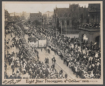 Der Sozialstaat hat am Ende des 19. und zu Beginn des 20. Jahrhunderts zunächst eine eher langsame und unstete Entwicklung genommen. Sie war gepräget sowohl von Fortschritten als auch von Widerständen, etwa vom Kampf gegen Armut und Elend, verursacht durch den Ersten Weltkrieg oder durch die Wirtschaftskrise der Zwischenkriegszeit, aber auch von der Stärkung der Linksparteien (insbesondere infolge der Einführung der Proporzwahl). (Foto: Australische Arbeiterbewegung)