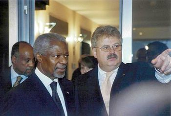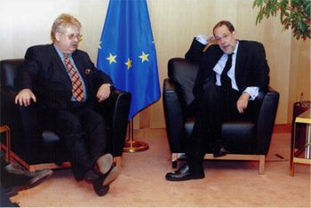 Elmar Brok, MdEP, Vorsitzender der EU-CDA (Foto: mit Javier Solana), Rheinischer Merkur, 6, 2009 (Auszug)