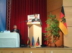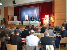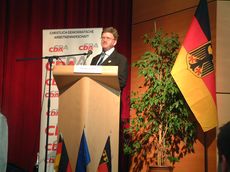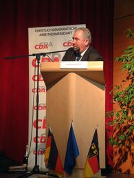 | Auf der Landestagung der CDA Rheinland-Pfalz wurde LV Bardo Kraus (links) mit überzeugendem Ergebnis wie- dergewählt. Die Rede des CDU-LV Christi- an Baldauf (rechts) stieß bis auf seine Äußerung zur Änderung des Betriebsver-fassungsgesetzes auf breite Zustimmung | Die Landestagung in Irrel, in unmittelbarer Nachbarschaft des luxemburgischen Eschternach, stand unter dem Motto "Soziale Verantwortung gerade auch in Krisenzeiten" |