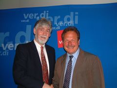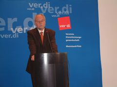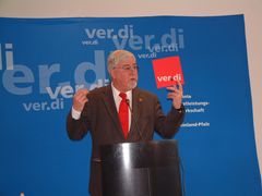 Ver.di Forum Schuldenbremse ![]() Ver.di Chef Frank Bsirske führte im Wap- pensaal des Mainzer Landtages aus, "eine Schuldenbremse führe zur unausweich-lichen Entstaatlichung, Privatisierung und Sozialabbau (Foto rechts mit M. Gerhardt) | ![]() Landtagspräsident Joachim Mertes sagte, Bundestag und Bundesrat könnten gar keine Schuldenbremse für ein Land beschließen: "Ort der Entscheidung ist der Landtag". (Rhein-Zeitung, 123, 29.5. 2009 |