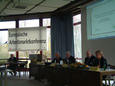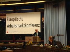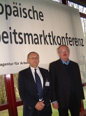 ![]() 1 st European Labour Market Conferenc Labour market dimensions of Lisbon Strategy: National labour market politics and European skelton regulations - Subsidiarity or cental need? (Fotos: Martin Gerhardt) | Moderation of event: Werner Schreiber, left, Minister (retired), Chairment fo Stiftung CSP and Otto Werner Schade, Chairman of the Management of the regional directorate Rheinland-Pfalz-Saarland, Agentur für Arbeit, Saarbrücken. |