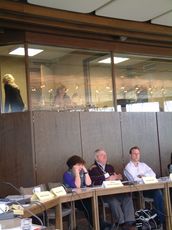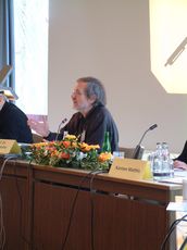 ![]() Unterhalb der Simultandolmetscherinnen: Die Vertreter des WOW Secretariats in Brüssel, Nelissen, van der Heijden, van Heusden. | ![]() Prof. Berndt Keller, University of Konstanz: "New compentencies für more and new employment with social obligation in Europe" |