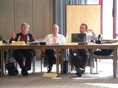 ![]() Prof. Andranik Tangian (links), Uni Karls- ruhe/Hans-Boeckler-Stiftung, Düsseldorf: "Flexicurity - A fair chance or restirction of workers' rignts" - Prof. Hermann Ribhegge, European Viadrina Franfurt/Oder: " National employment policy and the Lisbon Strategy - the example of the Federal Republic ov Germany". | ![]() Von l.: Joachim Herudek (former President eza), Robert Becker, National Presi- dent LCGB und sein Pressesprecher Christian Welter, Luxemburg.Robert Becker, ein Freund von Jean- Claude Juncker, der mit ihm das Lyceum und die Uni Straßburg besuchte, sprach wie Patrick Meyerm Vice President of the Parliament of the German-speaking Communitiy in Belgium und Katja Amthor, Head of Division Zentrale Auslands- und Fachvermittlung, Bonn, zum Thema: "Best practise - Strategies and measures for an integrative labour market |